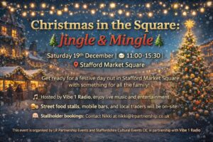 Enjoy a festive day out in the heart of Stafford with Christmas in the Square: Jingle & Mingle, taking place on Saturday 19th December from