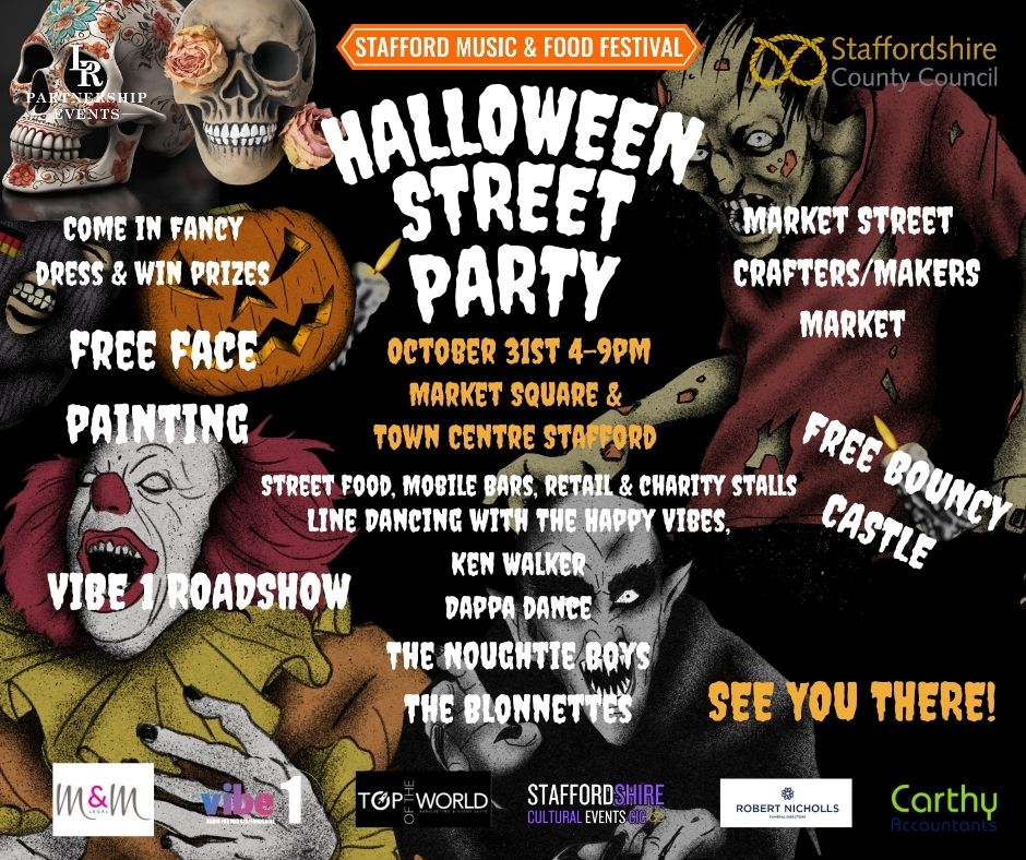 #HalloweenStreetParty #StaffordMusic&FoodFestivals #LRPartnershipEvents #CommunityVibes #staffordshireculturaleventsCIC πŸŽƒπŸ‘»πŸ¦‡
